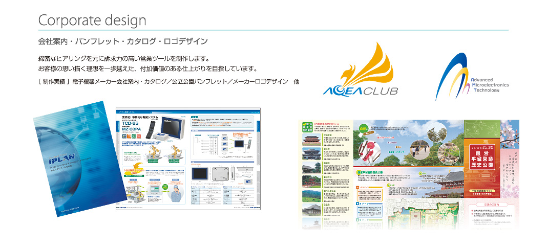 [ 制作実績 ]電子機器メーカー会社案内・カタログ/公立公園パンフレット/メーカーロゴデザイン 他