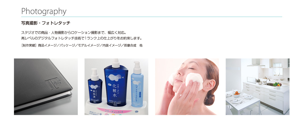 スタジオでの商品・人物撮影からロケーション撮影まで、幅広く対応。